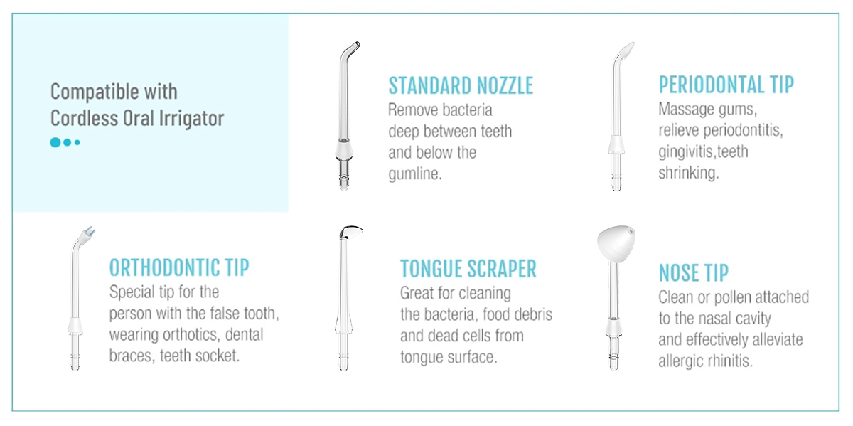 - Ergonomically designed handle and 360°rotated nozzle,let you easy to control water flow to reach all areas of the mouth.