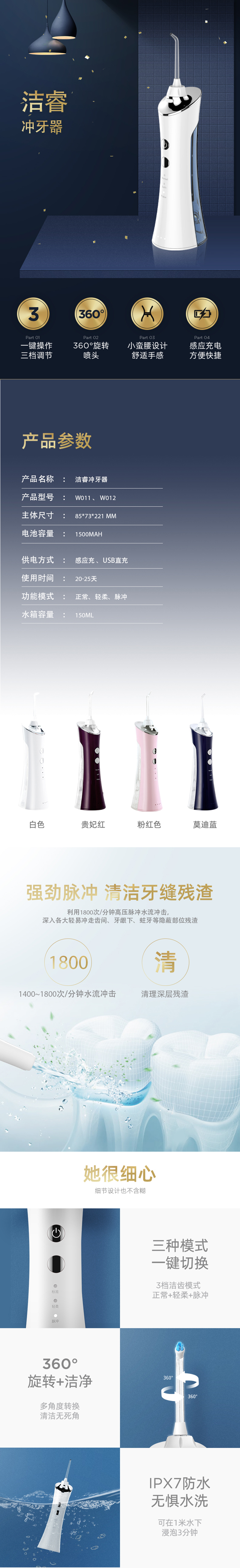 -去除齿间、牙龈部位用刷牙和用牙线无法清洁的食物残渣和细菌,冲牙后,口腔顿觉清新怡人。
